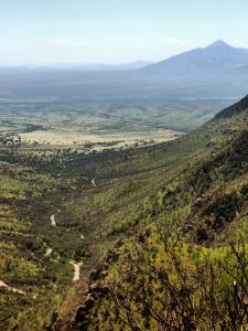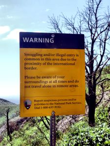 “Either of you afraid of heights?” he asked us, as we went over the map in his office before heading out. We answered in the negative, and soon found ourselves driving up a single lane gravel road towards the top of Coronado National Monument, where the border is visible for miles. Dever commented that fires had recently affected the area. “Here we’ve documented that there are several border-related causes for the fires,” he remarked. “There are intentional fires; that is, fires set to distract law enforcement to facilitate a crossing or a getaway; warming fires started during travel; and finally cigarette induced fires.” The latest one destroyed 52 homes and 5 businesses in the area.