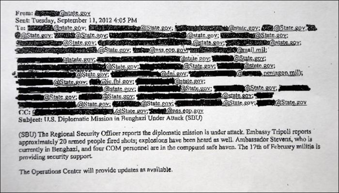 We now know that these emails were sent by the U.S. State Department to none other than the White House Situation Room, the Pentagon, the FBI and the Director of National Intelligence.